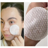 ۱. پس از شستشوی صورت، یک پد را برداشته و با سمت برجسته آن، پوست را بهآرامی پاک کنید