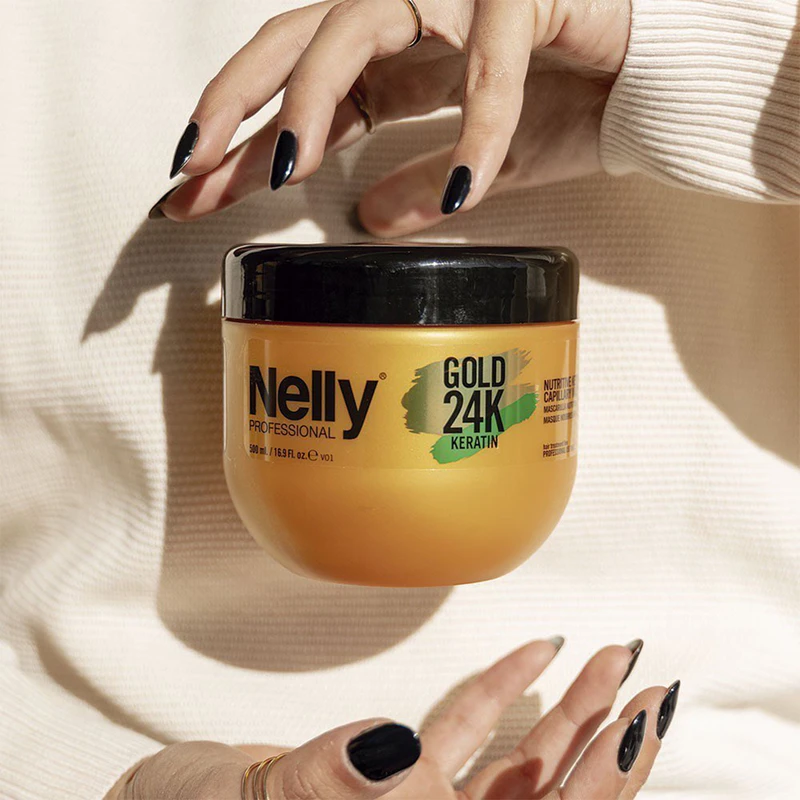 ماسک مو نلی مدل کراتینه گلد 24K حجم ۵۰۰ میلیلیتر Nelly Keratin Gold 24K Hair Mask