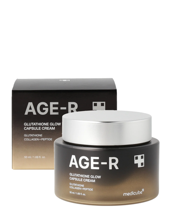 کرم Age-R Glutathione Glow Capsule Cream از برند کرهای مدیکیوب (Medicube) ترکیبی نوآورانه از گلوتاتیون، کلاژن و هیالورونیک اسید است که پوست را بهطور همزمان روشنتر، سفتتر و شادابتر میکند.