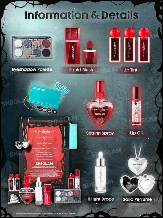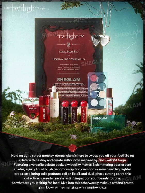 برند محبوب SHEGLAM با همکاری رسمی The Twilight Saga یک مجموعه آرایشی کاملاً Limited Edition خلق کرده که تمام حالوهوای رمانتیک، تاریک و جادویی فیلم را زنده میکند.