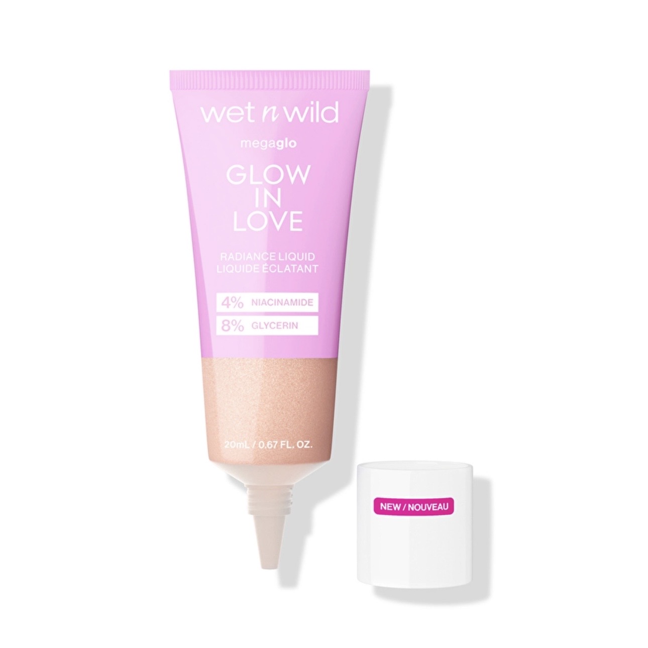 Wet n Wild MegaGlo Glow in Love Liquid Radiance Highlighter یک هایلایتر مایع سبک با جلوهای شفاف و طبیعی است که به پوست درخششی ملایم و لوکس میبخشد، بدون اینکه حس چربی یا برق مصنوعی ایجاد کند.