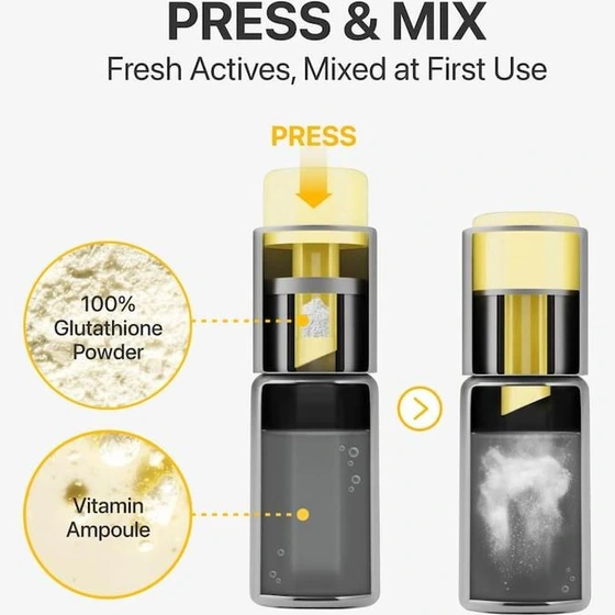 این آمپول ضد لک، گلوتاتیون با قدرت بالا را با اسید ترانگزامیک و عصارههای گیاهی غنی از ویتامین ترکیب میکند تا به رفع هایپرپیگمنتاسیون و رنگ ناهموار پوست کمک کند. این محصول دارای یک طراحی ترکیبی منحصر به فرد است که پودر گلوتاتیون خالص را با آمپول مایع مخلوط میکند تا حداکثر تازگی و اثربخشی را در هنگام استفاده به ارمغان بیاورد.